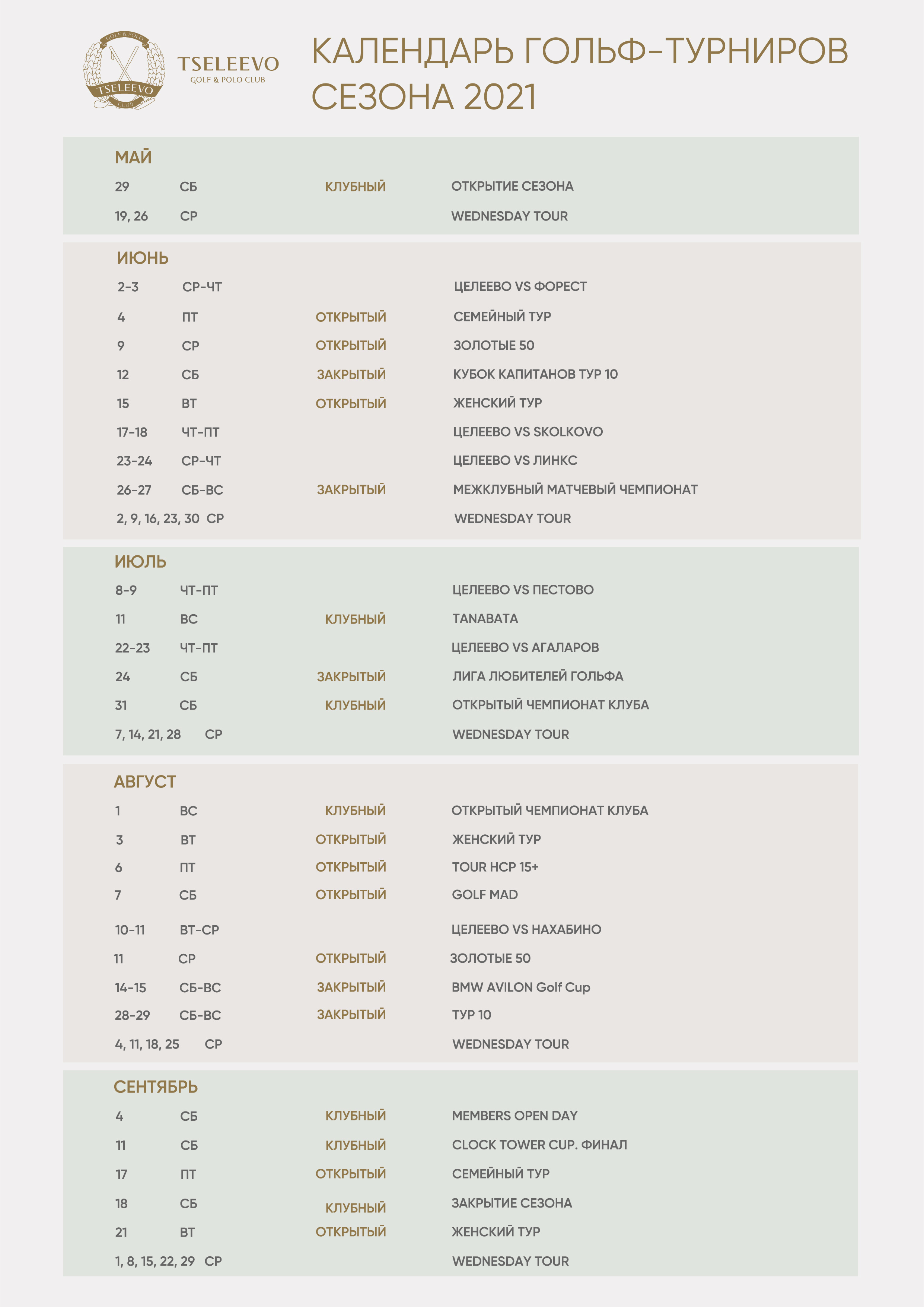Представляем вам календарь турниров гольф-сезона 2021.